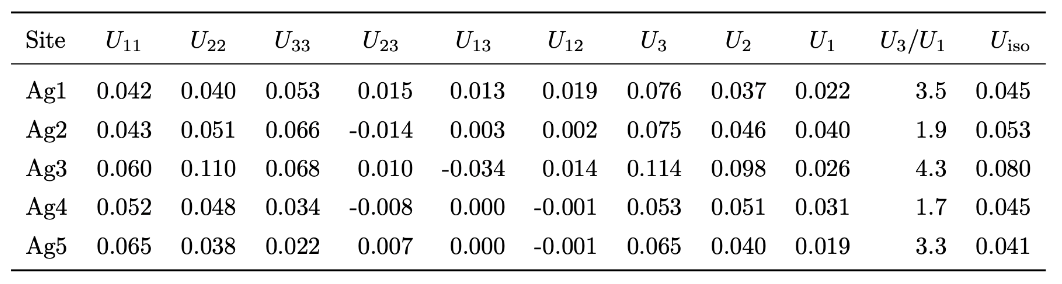 Table 1: U of Ag in Ag₈SnSe₆ at 300 K [Å2]
