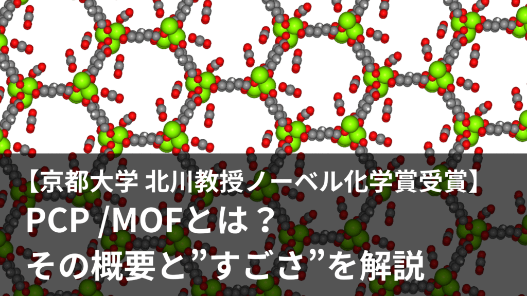 多孔性配位高分子(Porous Coordination Polymer; PCP)あるいは、金属有機構造体(Metal-Organic Frameworks; MOF)とは、有機配位子と金属イオンで構成される多孔性結晶のことを表します。最大の特徴としては、有機配位子と金属イオンの組み合わせにより、様々な特性を持つ材料を容易に合成可能であることが上げられ、ガス吸着や分離・触媒機能を設計できるとして注目を集め、多数の研究者により研究が進められています。
